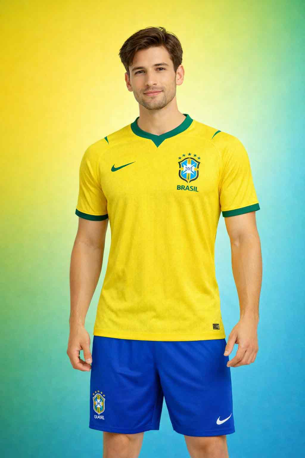 The Brazil Home World Cup 2026 Jersey With Shorts is a comfortable Playing Kit with shorts made for matchdays, and an indoor/outdoor play area. Designed for fans who want something beyond the standard home/away look, it features a standout style with a clean, premium finish. Customisation is available—add a name and number in original Brazil-style fonts and colours.