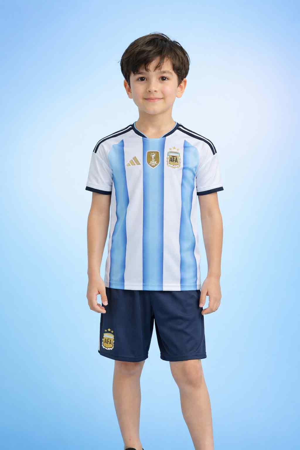 The Kids Argentina Home Jersey And Shorts World Cup 2026 is a coordinated jersey-and-shorts kit made for young Argentina fans. It’s comfortable for football practice, school games, and casual wear. Customisation is available—add a name and number in original Argentina-style fonts and colours.