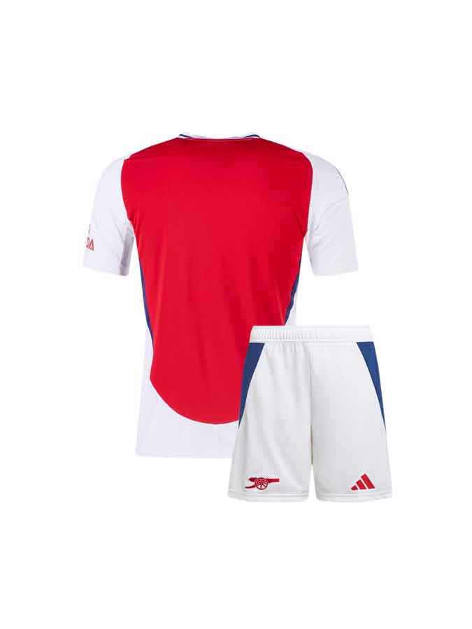 Kids Arsenal Home Jersey And Shorts 24–25 Season—a complete kids kit set with jersey + matching shorts in the 24–25 home look.